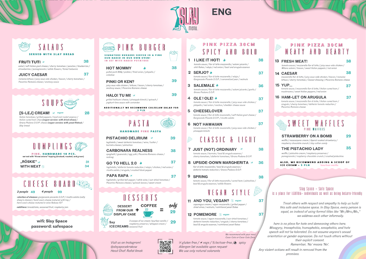 Welcome to SLAY SPACE LGBTQIA RESTAURANT AND CLUB, a vibrant culinary and nightlife haven nestled along the river at Podgórska 16, Kraków. This dynamic venue combines delectable dining with artistic performance, making it a must-visit spot for locals and travelers alike.